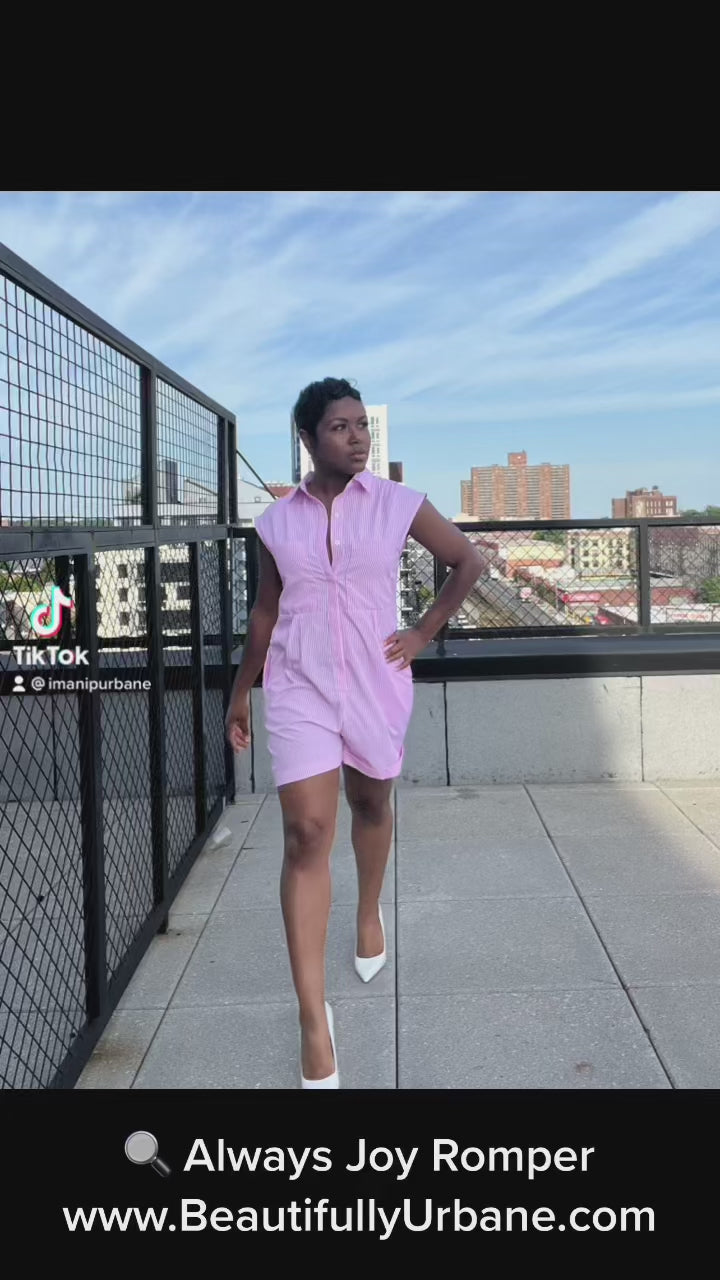 The Alway Joy Romper is a cute button up, collared romper that is lightweight and breathable for the Spring Summer Collection at Beautifully Urbane.