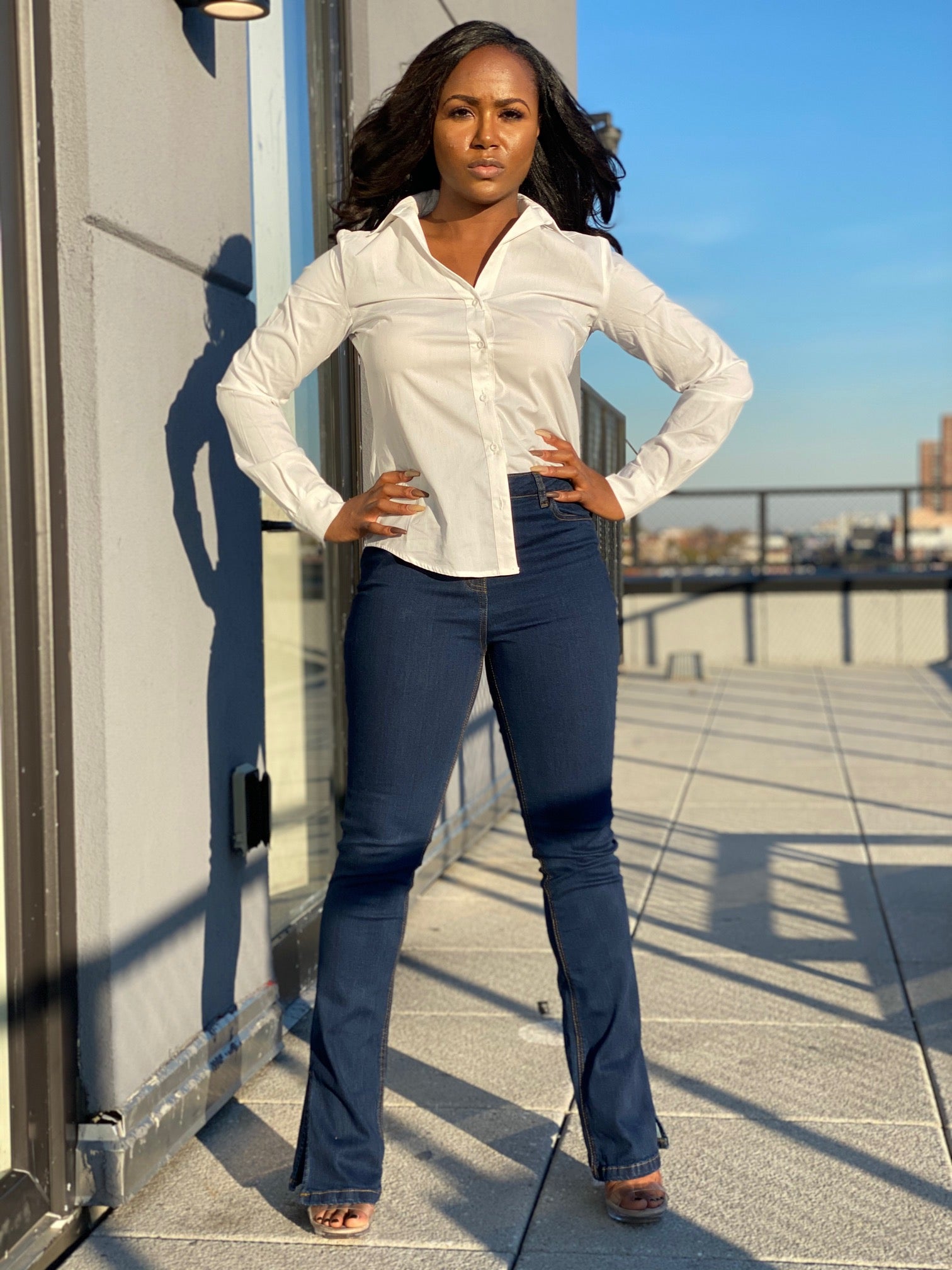 You can never have enough cotton stretchy jeans! The Baby Got back Jeans looks good with a heel, or a boot to show off the side slit. A high waisted jean can never go wrong.