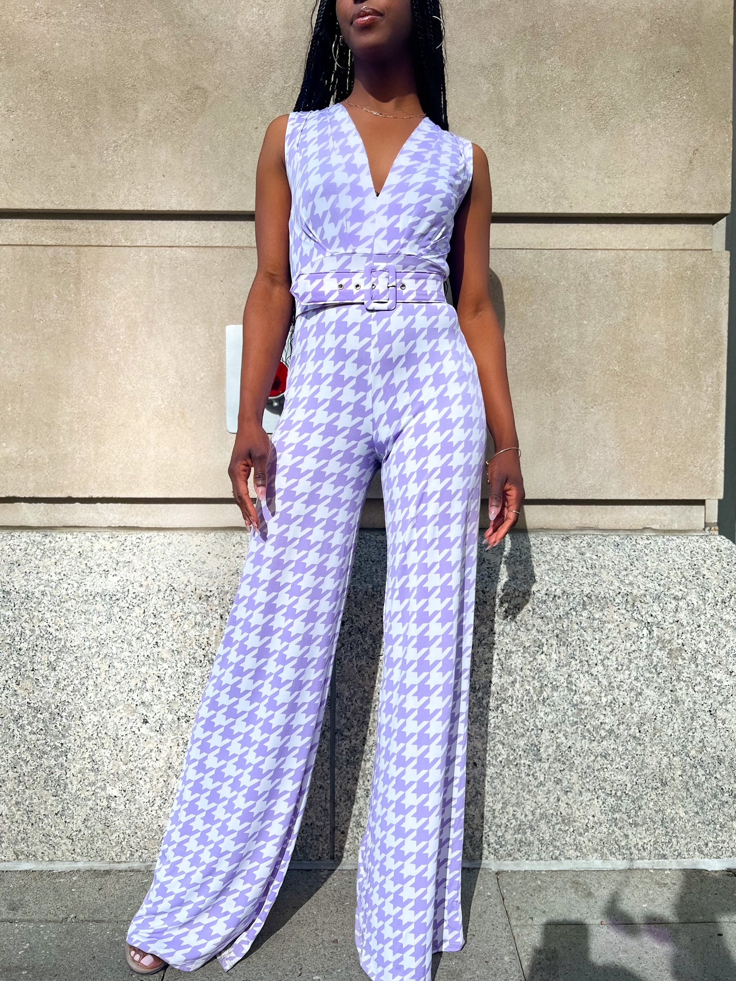 The Best I Am Houndstooth Jumpsuit is just that; A classic print with a touch of Lavender.