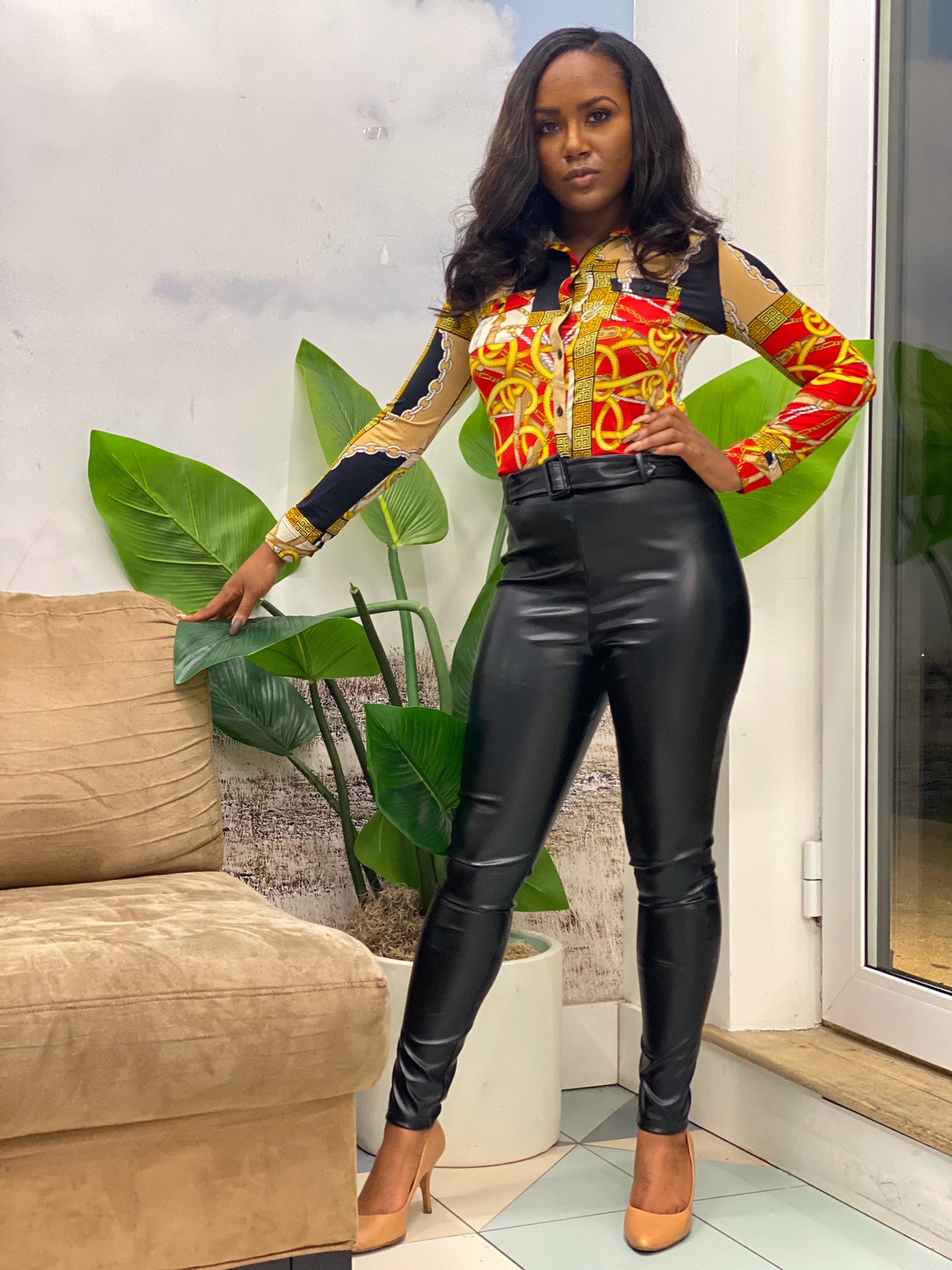 Update your wardrobe this season with these pu trousers featuring self belt & skinny fit. For a night out style yours with a crop top & strappy heels.