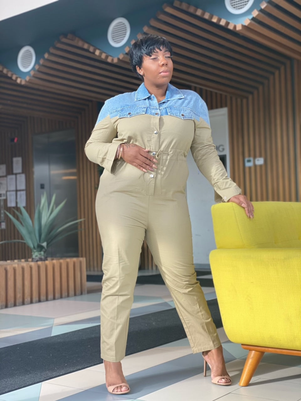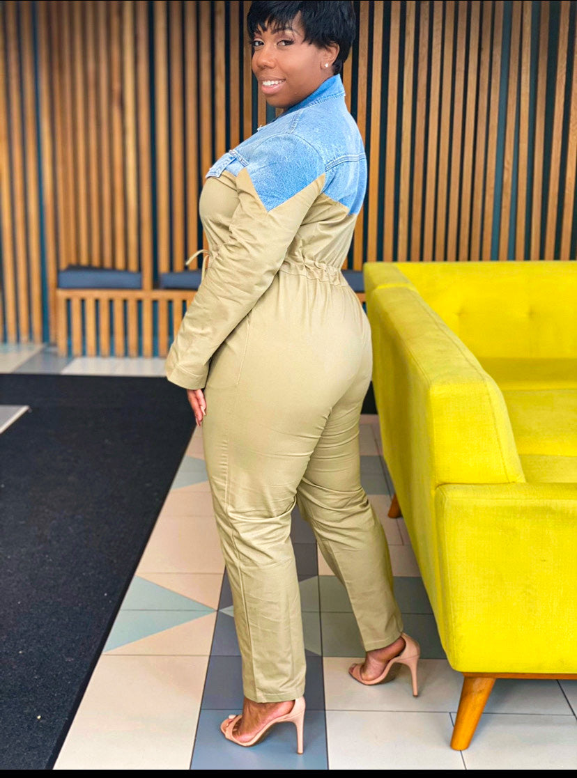 The versatile Denim Jumpsuit is a unique jumpsuit that offers denim and a khaki look.